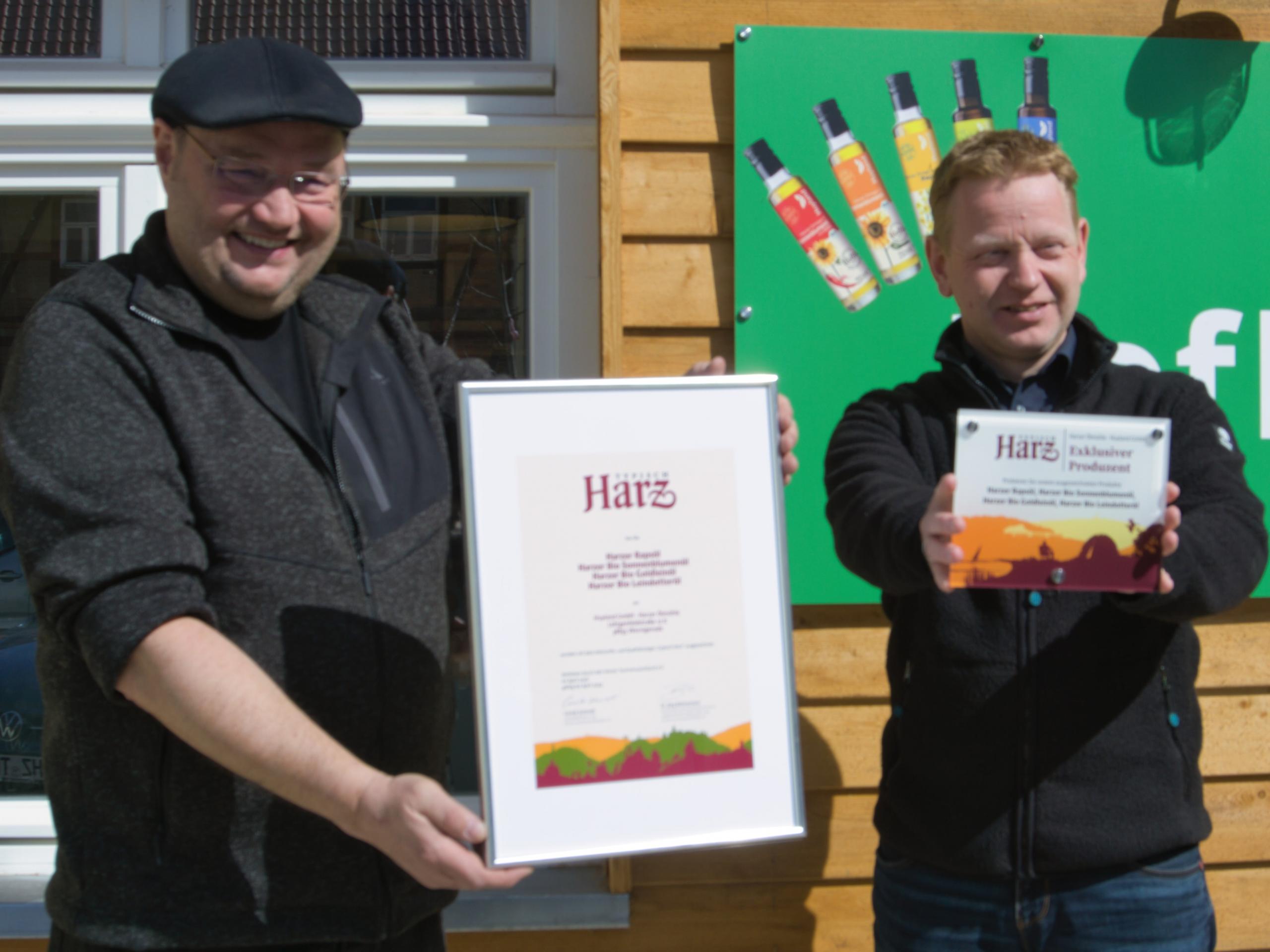 „Die Harzer Ölmühle ist eine große Bereicherung für das ‚Typisch Harz‘-Produktportfolio und ein echtes Beispiel dafür, wie aus Leidenschaft und hohem Qualitätsanspruch ein regionales Erfolgsprodukt entstehen kann“, freut sich Andreas Lehmberg, stellvertretender Geschäftsführer des Harzer Tourismusverbandes, anlässlich der offiziellen Urkundenübergabe heute in Eilsdorf.